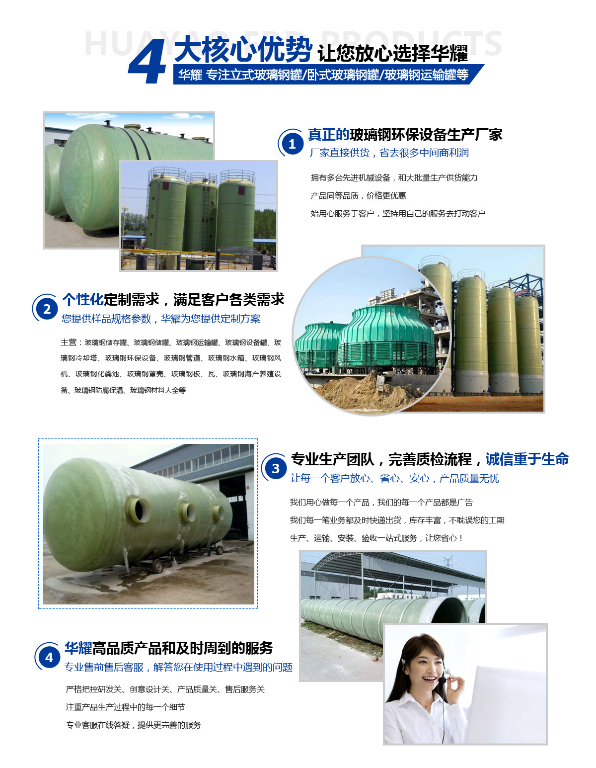 2022-8玻璃鋼鹽酸罐因?yàn)楸旧頇C(jī)體材料高分子聚酯優(yōu)良耐腐蝕性能,決定了產(chǎn)品...